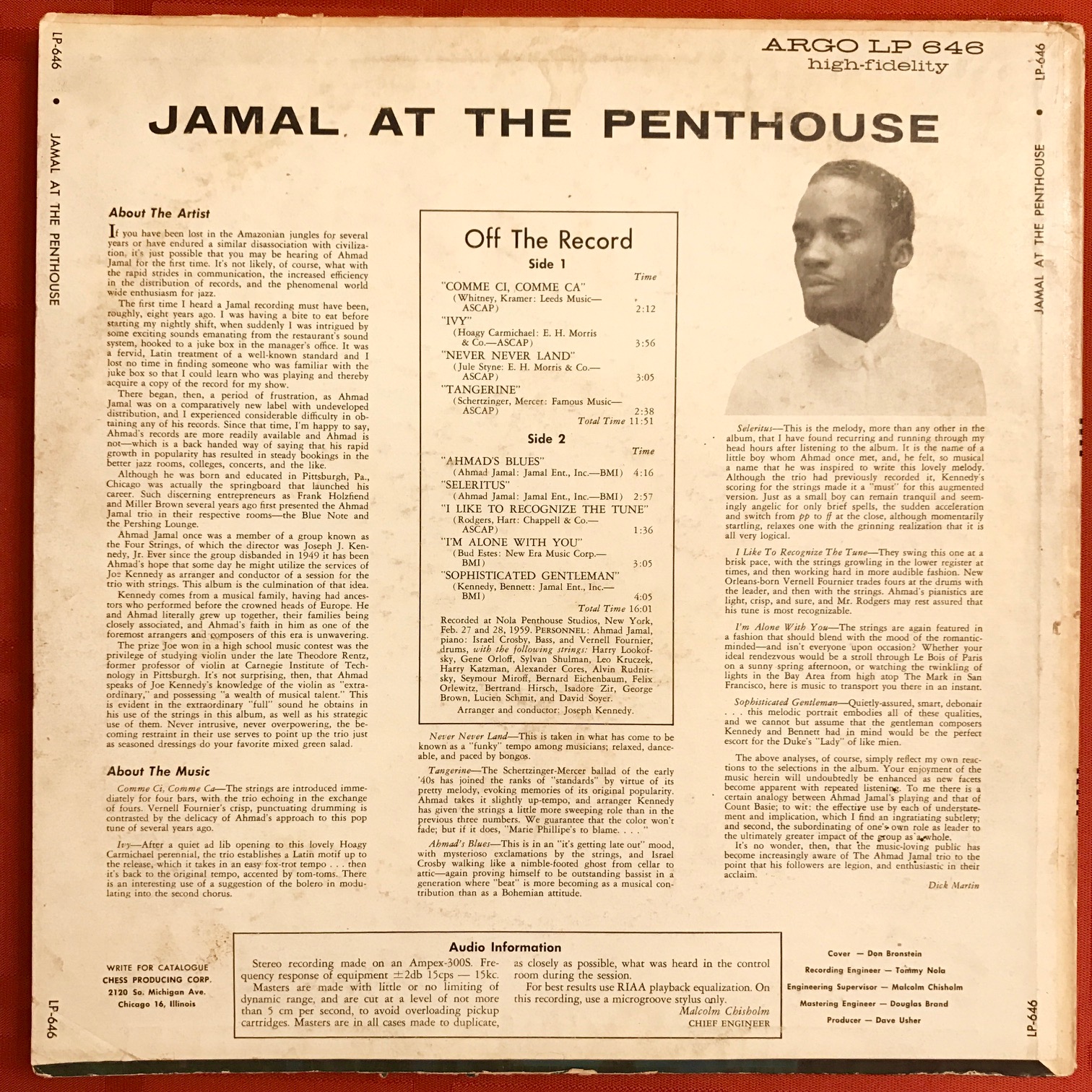 Good ole’ eBay, where I didn’t pay more than $15 for it. Ahmad Jamal isn’t a very highly sought-after artist it seems, which is good for poor people like myself. I commonly see his albums for sale in record stores for under $10 bucks, and even his mega hit ‘Live At The Pershing’ with the tune ‘Poinciana’ goes for a buck. Again, good for poor folk like myself!