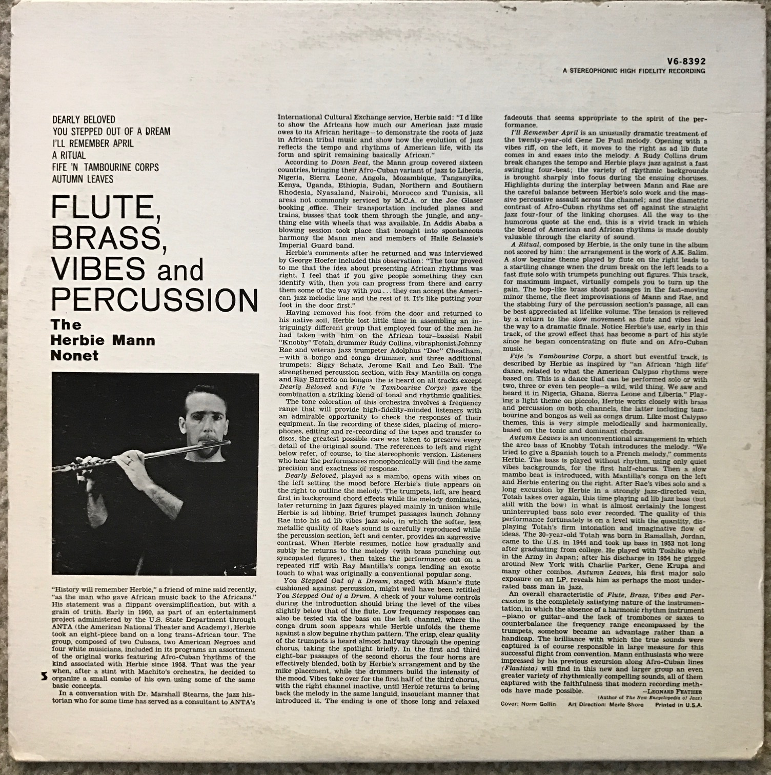 One thought on “Flute, Brass Vibes and Percussion // Herbie Mann (Verve V6- 8392)”