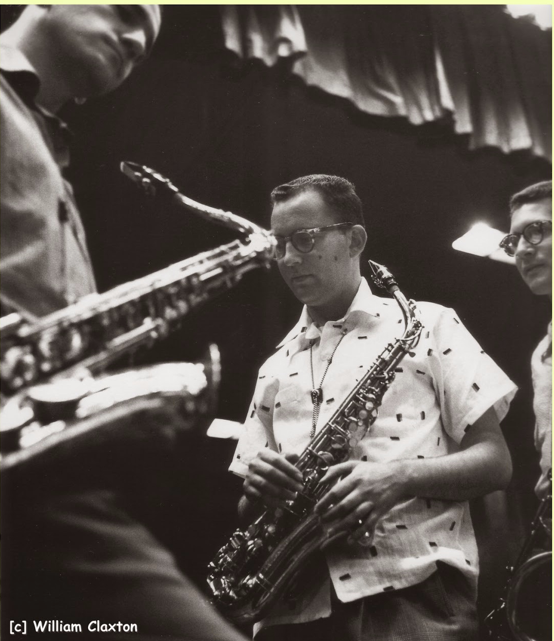 Taken by famed jazz photographer William Claxton at the recording session, the album cover art quite literally captures the mood of the music inside the album. Apparently caught listening to playback in the studio, the guys are all in thought and concentrating on their craft. The angle of the photograph provides an interesting portrait. From left to right is Jack Montrose, Lennie Niehaus, and Bob Gordon. The black and white photography combined with the simplistic yellow lettering adds to the hip vibe. Their clothing is also a point of interest. West Coast jazz album’s cover art was distinctly different from East Coast jazz’s cover art. A typical Blue Note album from the time may feature photos of black musicians in suit and tie, sweat on their brow and caught in an action shot. They LOOK like jazz musicians. Meanwhile in LA, Claxton finds his subjects in casual clothing, looking more like librarians or college students with their cardigans, slacks, and horn-rimmed glasses. It’s solid cover art.