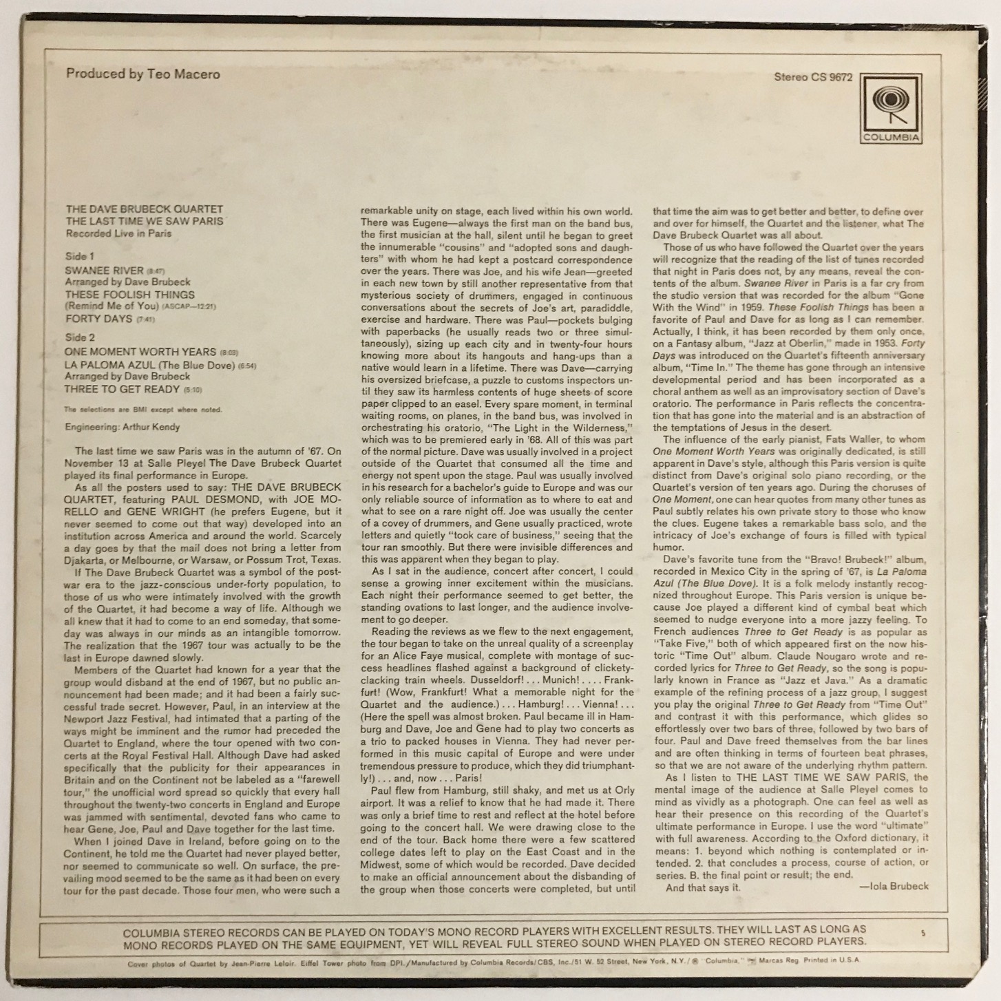 One thought on “The Last Time We Saw Paris // Dave Brubeck (Columbia CS 9672)