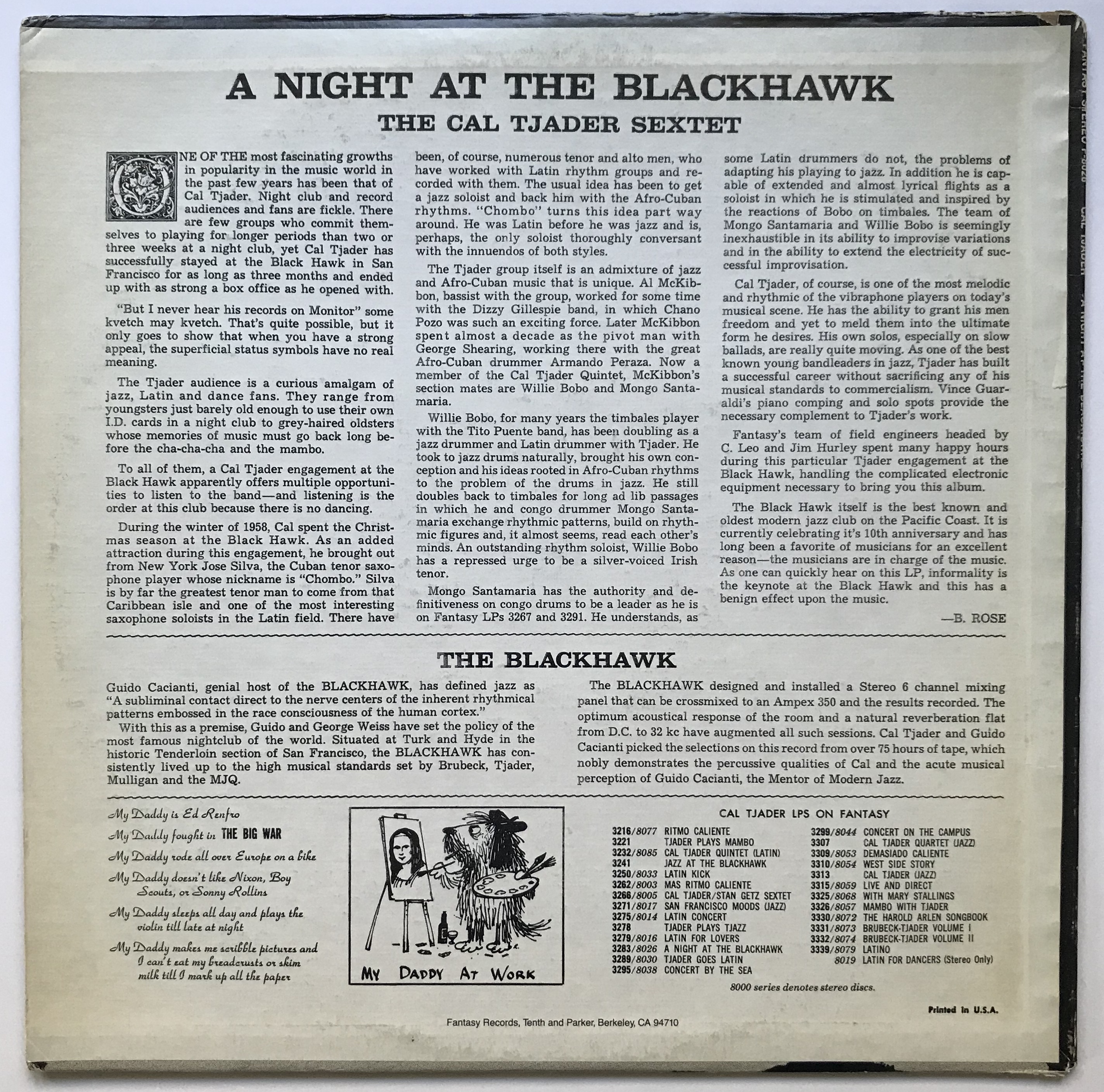 Learning that there was a special recording system installed into the Blackhawk is kinda cool, as is the revelation that there’s what 75 hours of tape that was recorded during Tjader’s stay at the Blackhawk.  Where is the rest of the material? Perhaps buried deep in the Fantasy vaults?