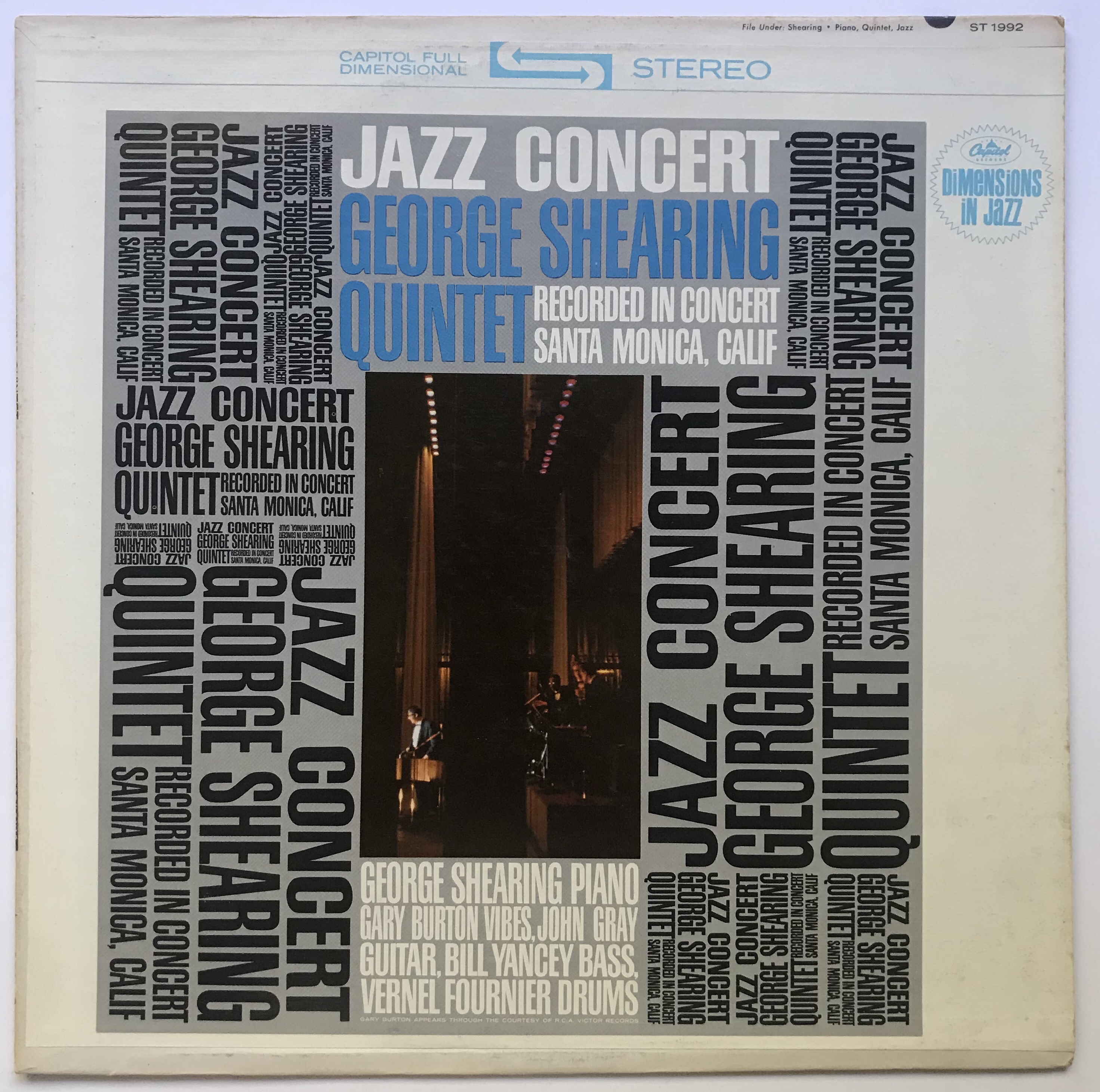 In short, this is a fine album with solid playing by all hands. Speaking of which, this edition of George Shearing’s quintet may have seemed like a sleeper, but it had some heat in its ranks. For example, the great yet underappreciated drummer Vernel Fournier. Formerly with Ahmad Jamal (he’s the drummer on “Poinciana”), Fournier (pronounced “forn-ee-aye” because it’s French) was a tasty drummer and nasty with brushes. The big name in the group however is Gary Burton. By the time he played this concert in early 1963, Burton had two albums as leader under his belt, but this was the highest profile job he had had, bringing him a lot of exposure. Burton would go on to higher heights as a sideman with Stan Getz and then as a leader, recording and performing up to 2017, when he finally retired.