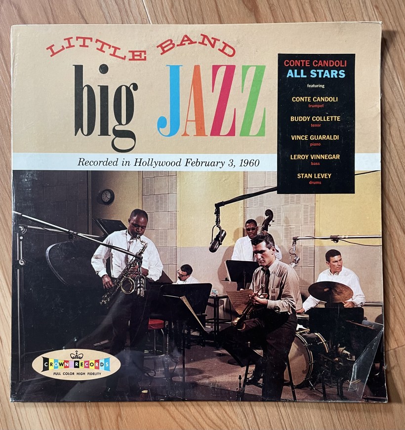 Vince Guaraldi has been experiencing a revival of sorts these past few years. Thanks to Craft Records’ renewed interest in the pianist’s catalog, his legacy and appreciation is receiving a major boost. It’s well-deserved, and as a long-time Guaraldi fan, I love to see it. Some of his best work however was as a sideman, and in 1960 he made a record with Conte Candoli and Buddy Collette that’s absolutely perfect in every way. Little Band Big Jazz is the album, and it’s really obscure. Like really. I’d always kept an eye out for it but was beginning to think I would just have to buy it online instead of finding it organically.